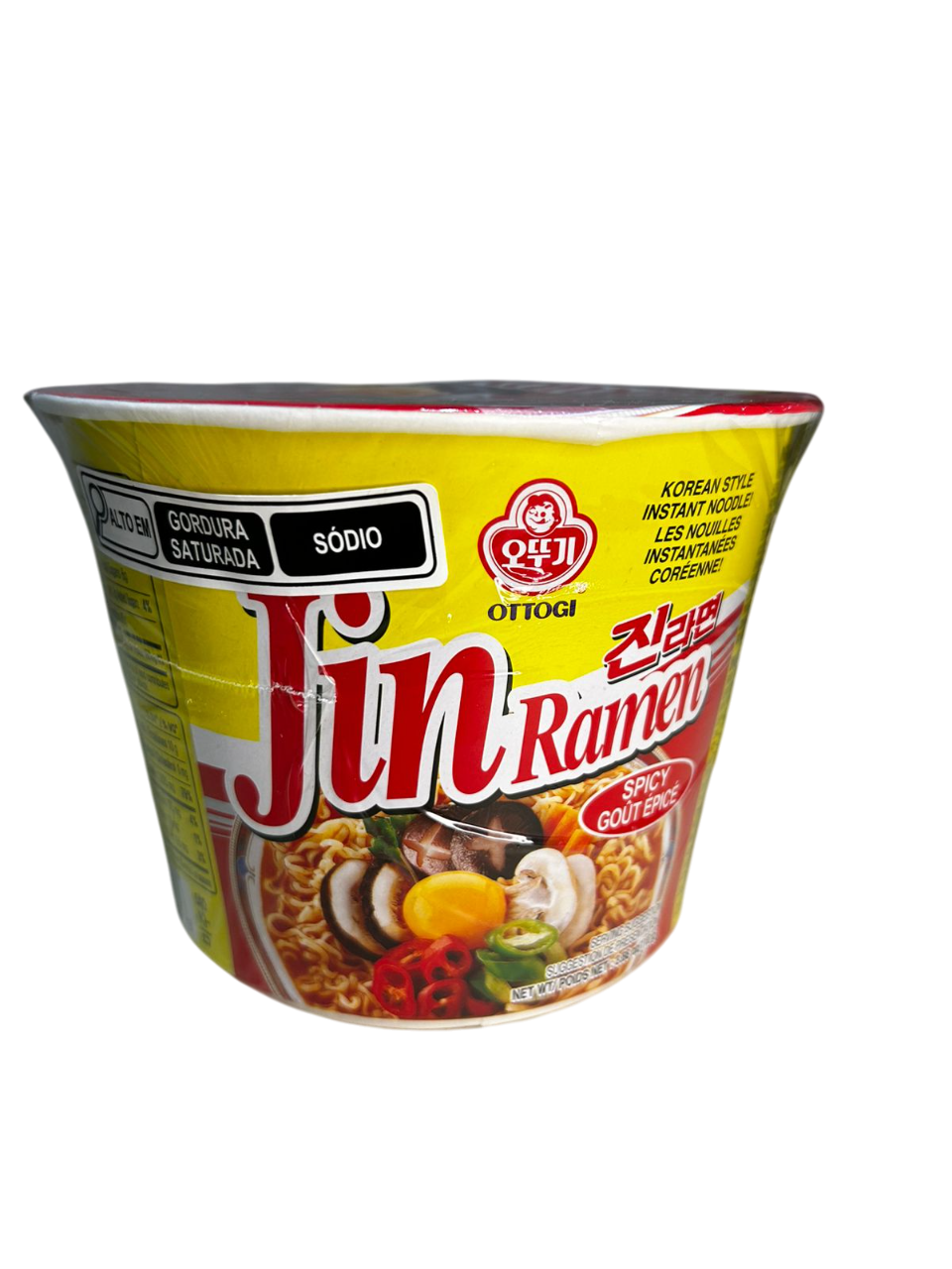 Embalagem: Contém um copo Bowl de macarrão instantâneo Jin Ramen Picante com 110 gramas (macarrão + sachê).